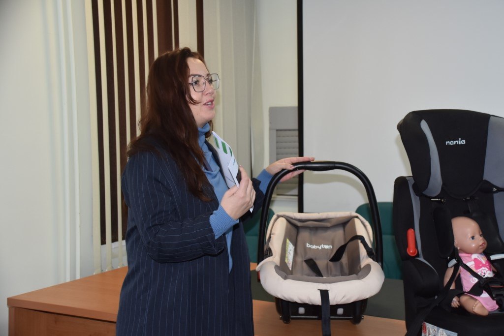 Одним из самых наглядных и полезных моментов занятия стала демонстрация автолюльки и автокресла. Будущим мамам показали, как они правильно устанавливаются в автомобиле и как в них надежно фиксируется ребенок. В завершении каждой участнице были вручены специально разработанные памятки. Эти брошюры содержат основную информацию о правилах перевозки детей, требованиях к автолюлькам и автокреслам, а также напоминания о важности соблюдения ПДД.