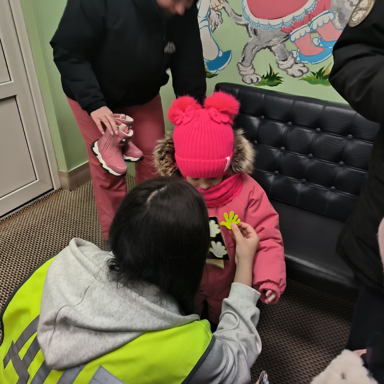 Утром участники акции встретили родителей и детей в холле детского сада «Золотой ключик». Инспектор по пропаганде безопасности дорожного движения городского отдела полиции Татьяна Полищук напомнила взрослым о необходимости строго соблюдать ПДД и использовать световозвращающие элементы на одежде — взрослым, и детям. Юные инспекторы движения активно помогали: приклеивали дошколятам световозвращающие наклейки и вручали родителям тематические памятки с полезными рекомендациями. Все участники утреннего этапа получили подарки — световозвращающие брелоки.