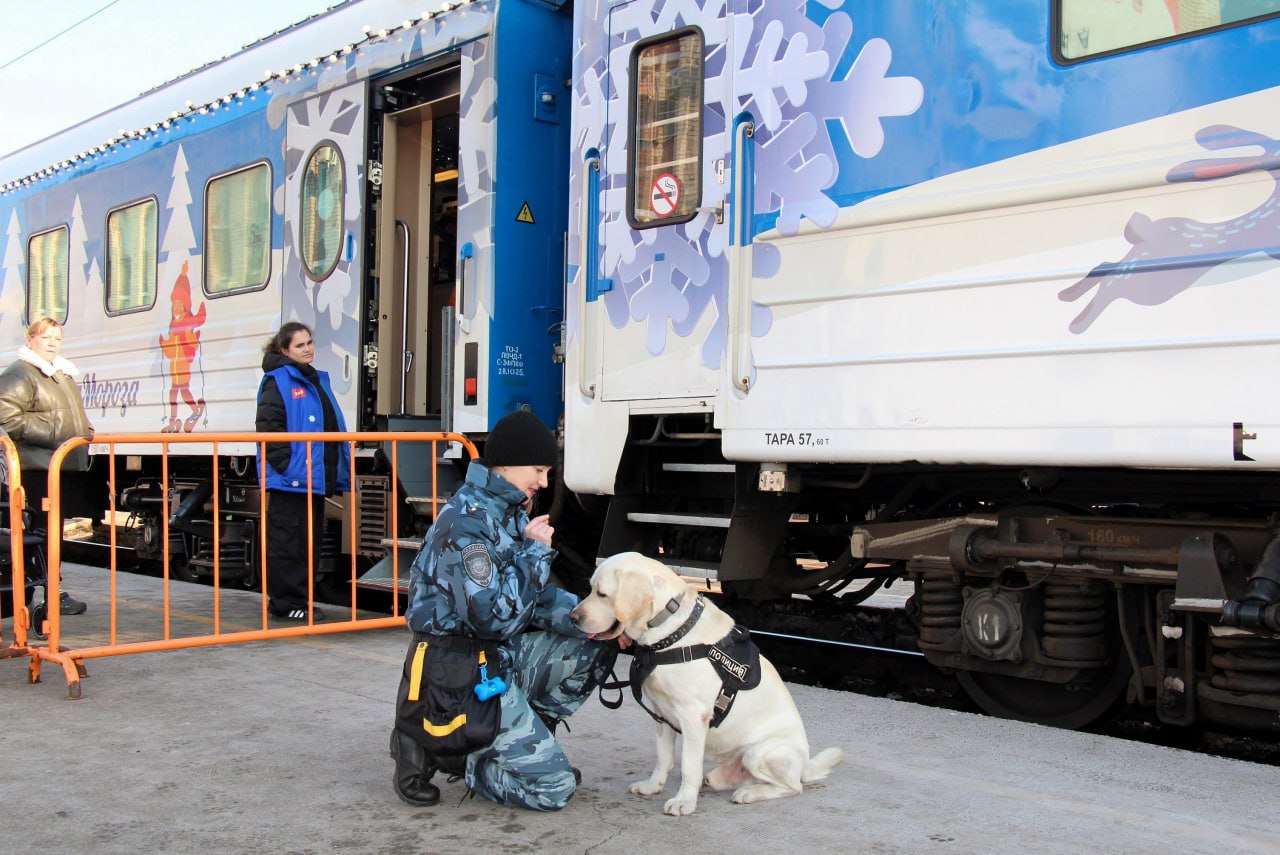 Транспортные полицейские Уссурийска обеспечили безопасность при прибытии поезда Деда Мороза на станцию Уссурийск