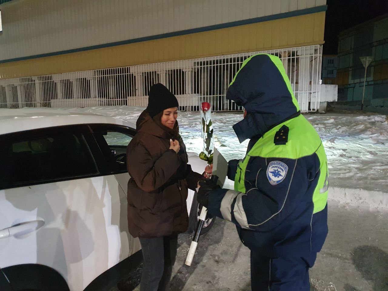 Госавтоинспекция в Анадыре поздравила представительниц прекрасного пола в преддверии Дня матери