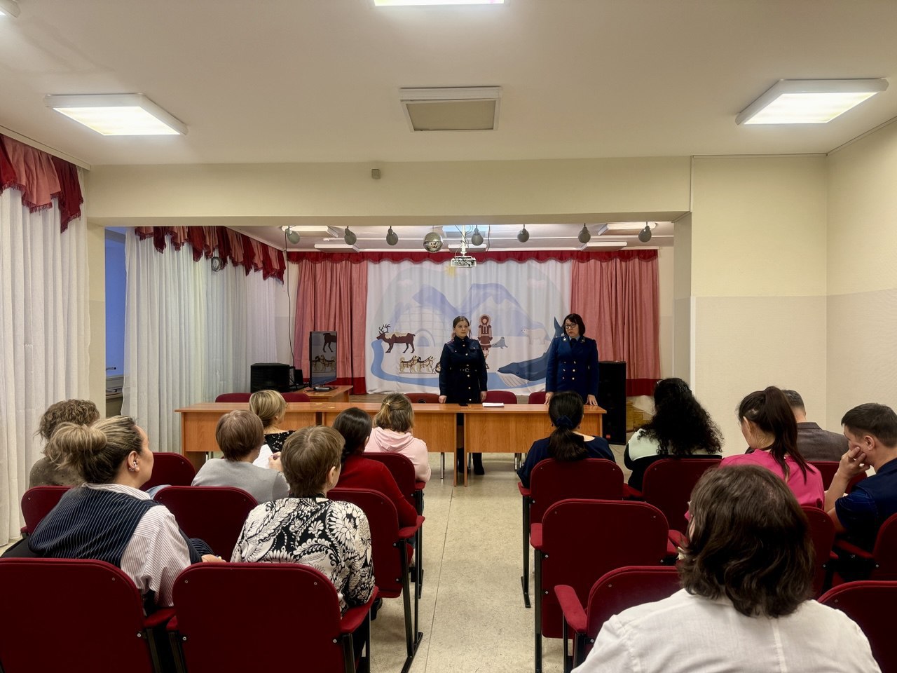 Следователь Анадырского межрайонного следственного отдела следственного управления СК России по Чукотскому автономному округу совместно с представителем прокуратуры провела рабочую встречу с педагогическим составом ГКУСО «Чукотский социально-реабилитационный центр для несовершеннолетних».