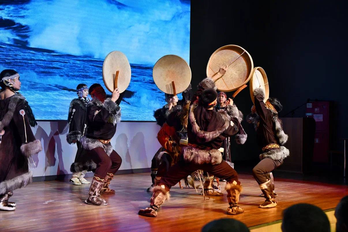 Торжественную часть мероприятия украсили творческие номера в исполнении коллектива «Полюс притяжения» и знаменитого государственного академического чукотско-эскимосского ансамбля «Эргырон».