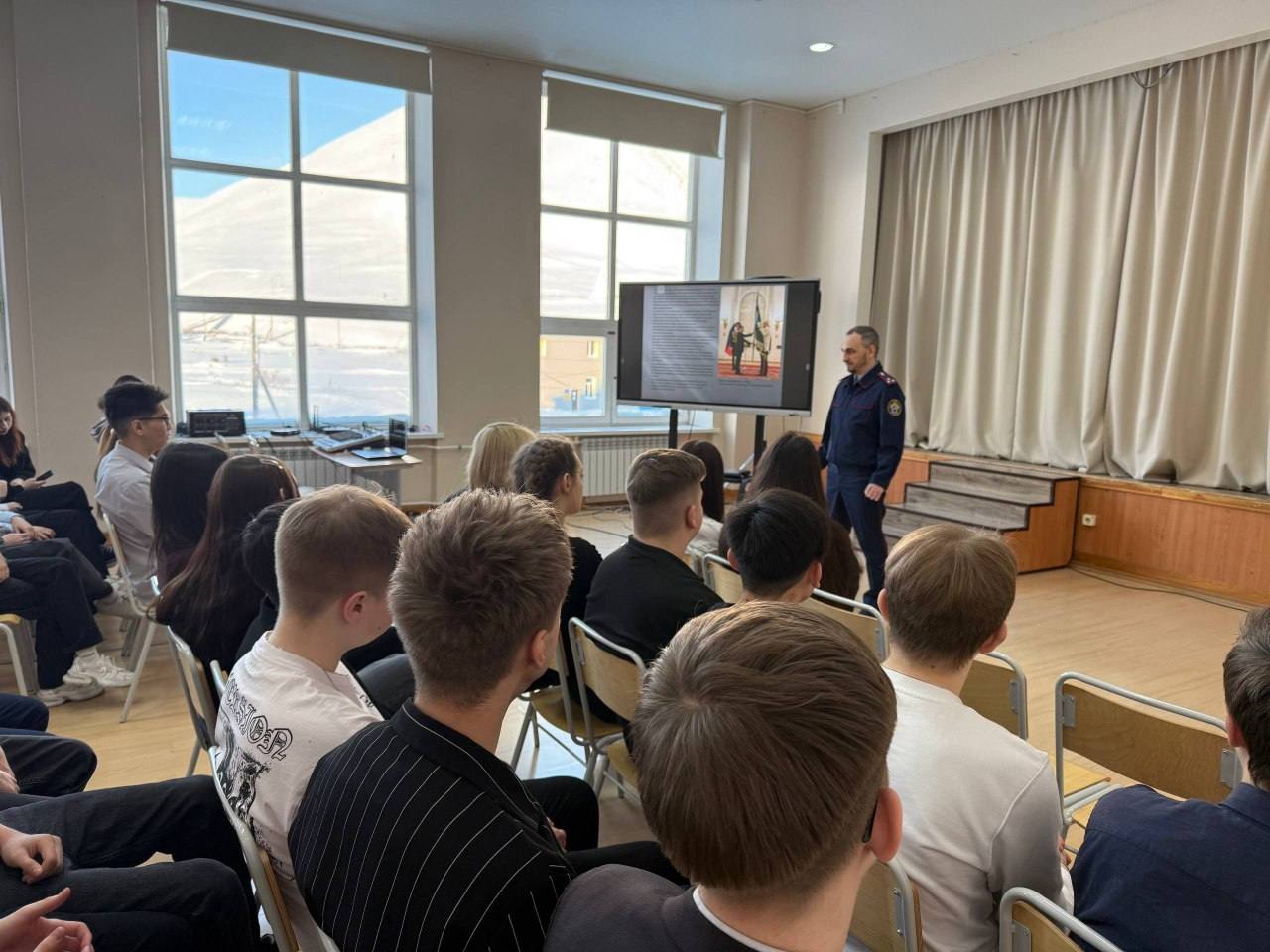И.о. руководителя Иультинского межрайонного следственного отдела следственного управления СК России по Чукотскому автономному округу Андрей Борисович Яковлев провел встречу с учащимися МБОУ «СОШ поселка Эгвекинот», приуроченную к 15-й годовщине образования Следственного комитета Российской Федерации.
