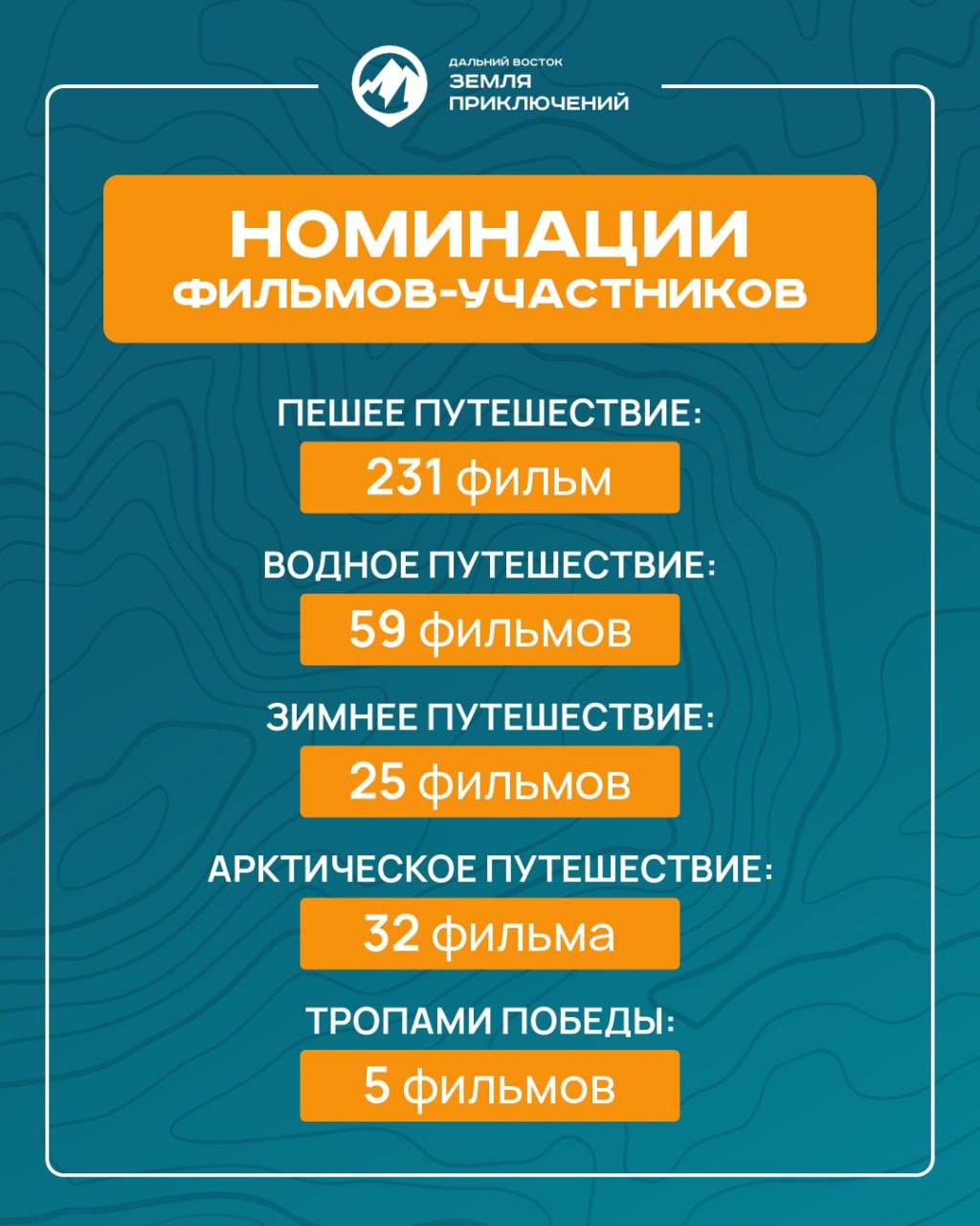 Новые номинации конкурса также вызывают интерес у участников. О своем «Арктическом путешествии» сняли фильмы 32 путешественника, в спецноминацию «Тропами Победы» поступило 5 фильмов.