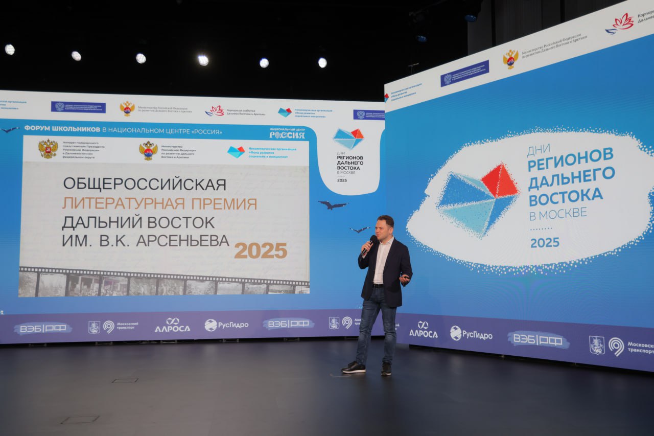 На Форуме школьников, который проходит в наццентре «Россия», представили литературную премию «Дальний Восток» им. В.К. Арсеньева. Это событие стало частью проекта «Дни регионов Дальнего Востока в Москве».