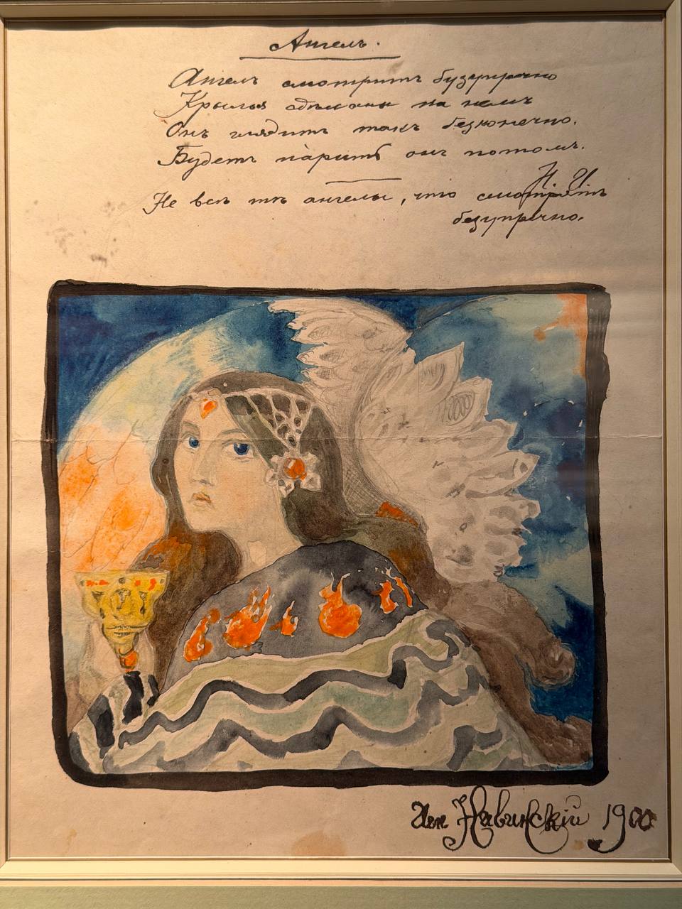 На моих фото: фото 1, 2, 4 - работы Михаила Нестерова, фото 3 - портрет Нестерова, выполненный художником Сергеем Виноградовым, фото 5 - «Ангел» Игнатия Нивинского, фото 6 - «Спас нерукотворный» Виктора Васнецова, фото 7 - «Александр Невский» Павла Корина, фото 8 - эскиз росписи Андрея Рябушкина в Новочеркасском соборе, которые я недавно видела своими глазами.