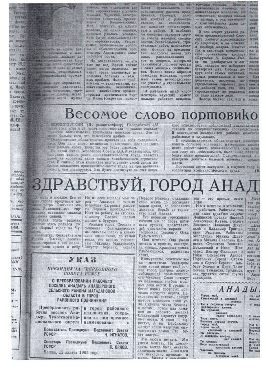 В дополнение к публикации в архиве нашли вырезку из газеты "Советская Чукотка".