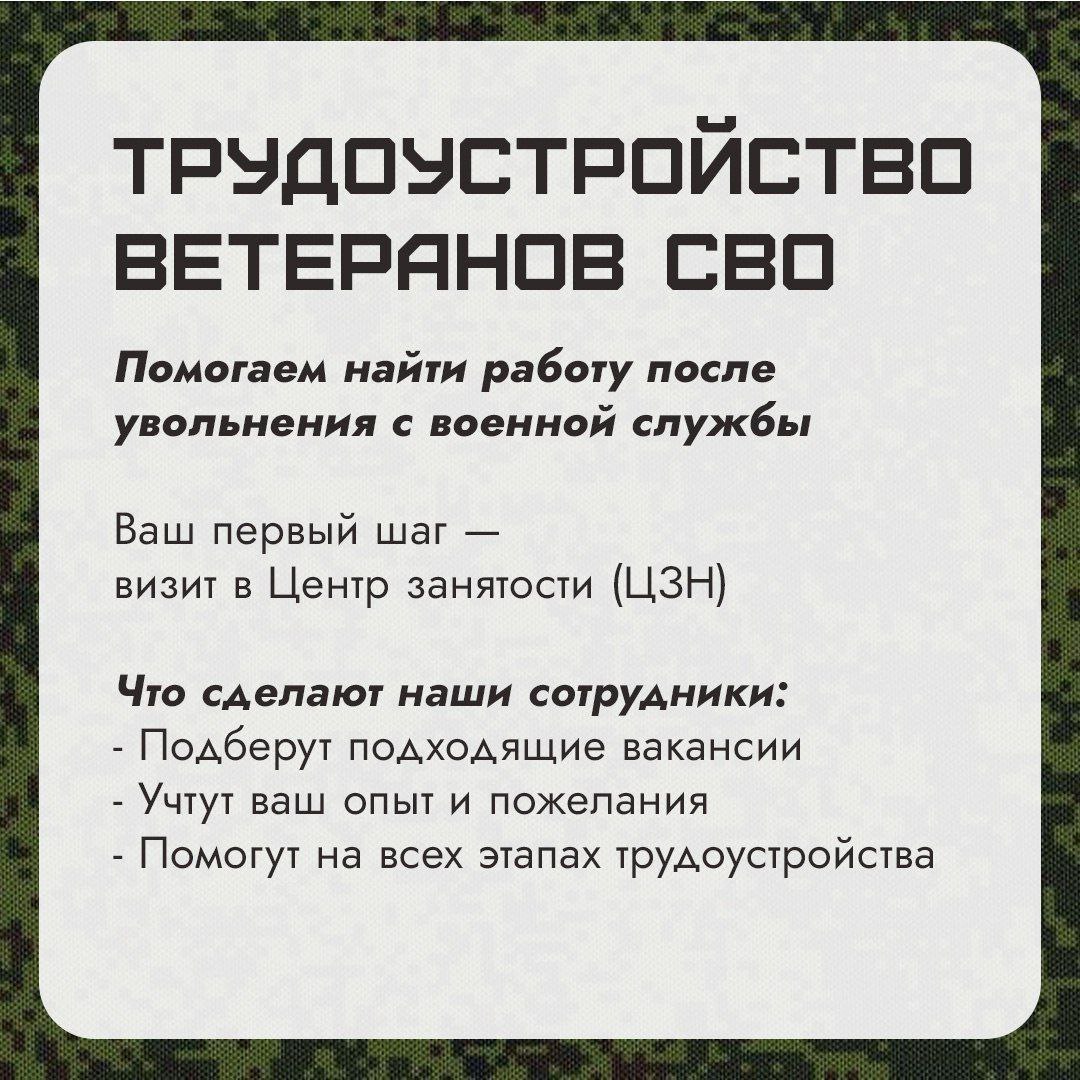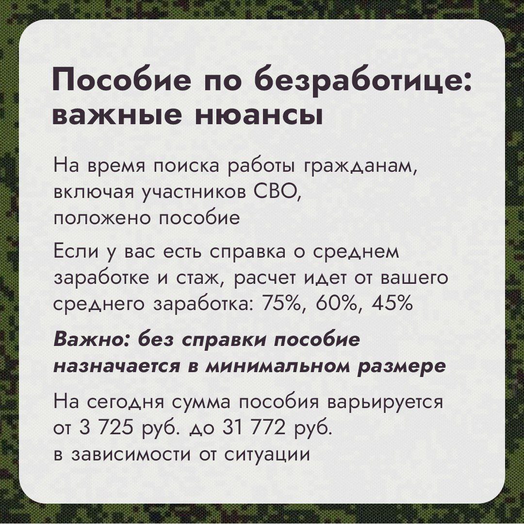 О трудоустройстве и пособиях для участников СВО
