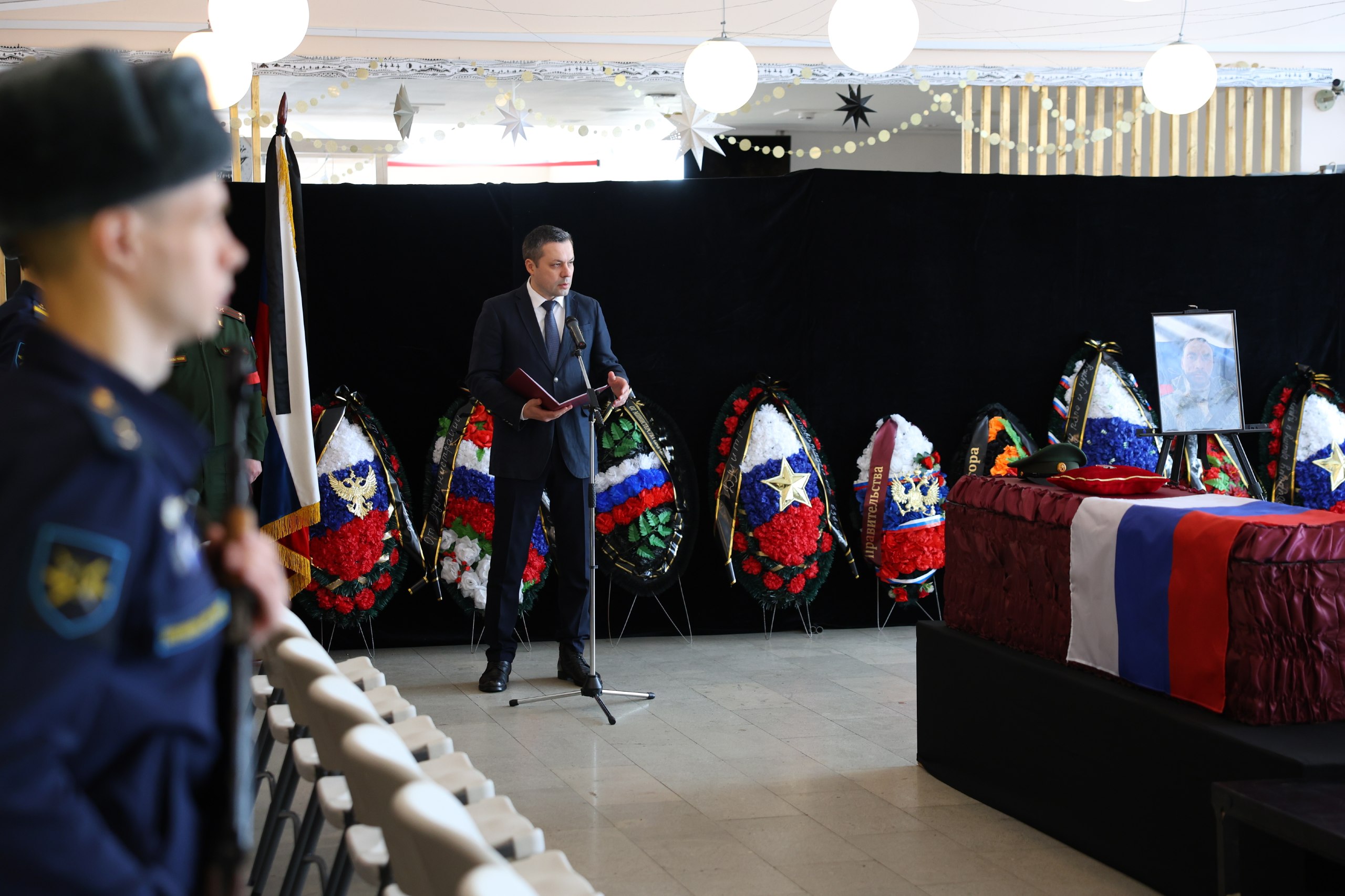 Проводы состоялись в окружном доме народного творчества. Почтить память героя пришли самые близкие, а также представители власти: Заместитель губернатора, начальник Департамента гражданской защиты и противопожарной службы Чукотского автономного округа Станислав Лунин, депутат Государственной Думы Елена Евтюхова, заместитель Главы городского округа Анадырь Анастасия Тюменцева.