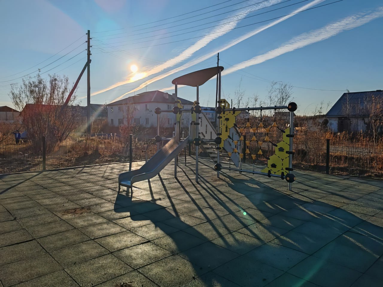 Теперь у ребят появилась новая современная площадка для игр - с современным освещением, надежным ограждением и специальным резиновым покрытием.