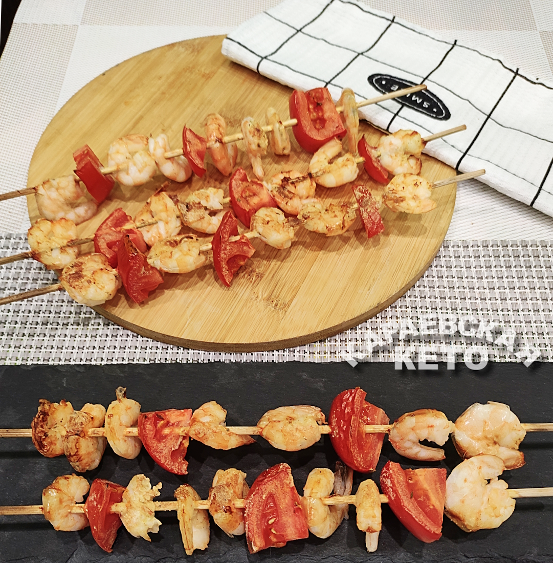 Когда все ингредиенты готовы, пора собирать "шашлычки": чередуйте креветки и помидоры на шпажках. Не забудьте посолить и сбрызнуть все лимонным соком. После этого можно отправлять шашлычки в духовку.