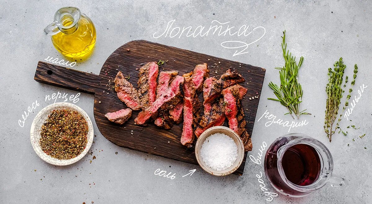 - Стейк из лопатки: Этот мясной кусок обладает насыщенным вкусом, который можно разбавить простым маринадом на основе красного вина.
