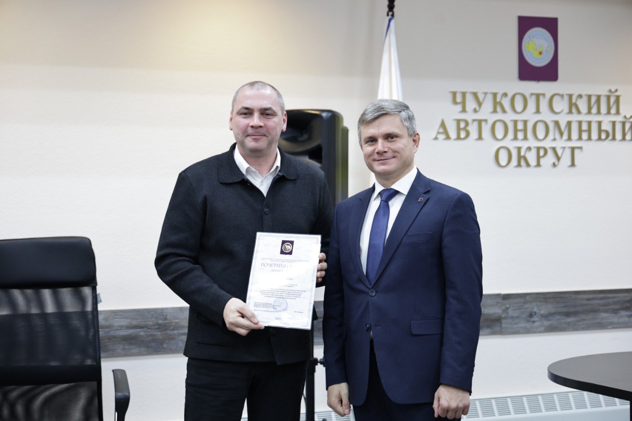 В завершении поздравил всех тружеников и ветеранов отрасли Чукотского автономного округа с наступающим профессиональным праздником, пожелал успехов в труде на благо округа и вручил заслуженные награды 10 работникам.