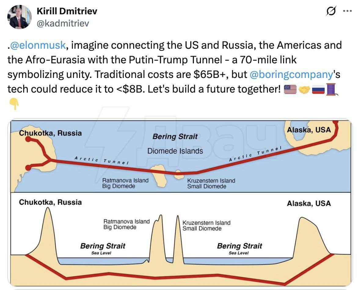 Нужна куда более серьезная инфраструктура, которая обойдется отнюдь не в 8 млрд, о которых говорит Дмитриев. Кто даст эти деньги? Маск? Ему это надо? Это проект из серии "колонизации Марса" - красиво рассуждать можно сколько угодно, на практике мы к этому при нашей жизни даже не приблизимся.