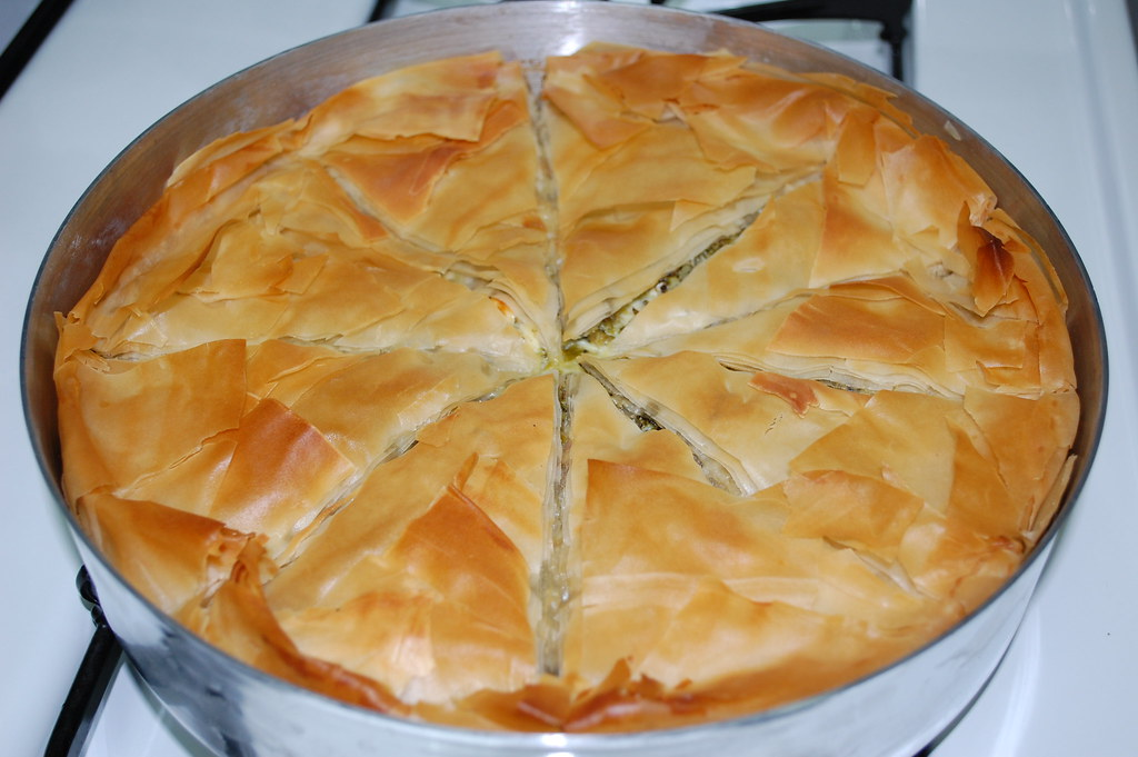Выпекать в разогретой духовке 30-35 минут, пока пирог не получит золотистую корочку. Дать немного остыть перед подачей.