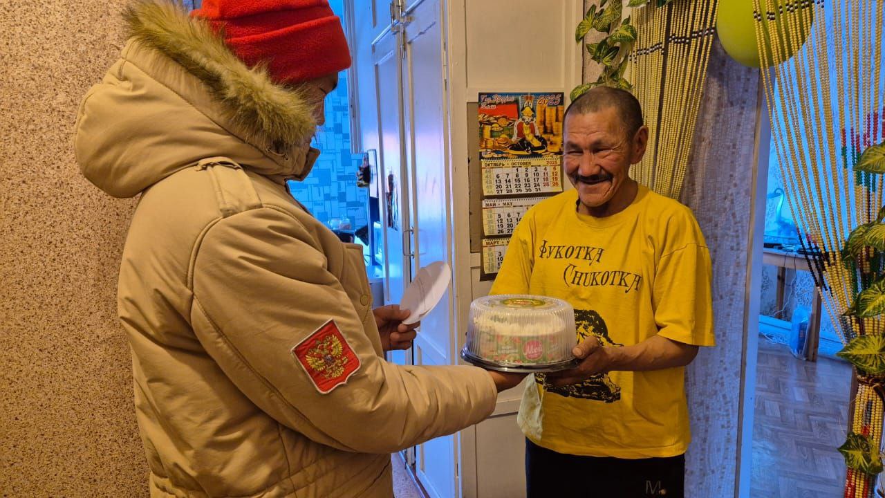 В селе Амгуэма активисты ВВПОД «Юнармия» поздравили с праздником Василия Рахтувье, отца Валерия Рахтувье, погибшего в зоне СВО при выполнении боевого задания.