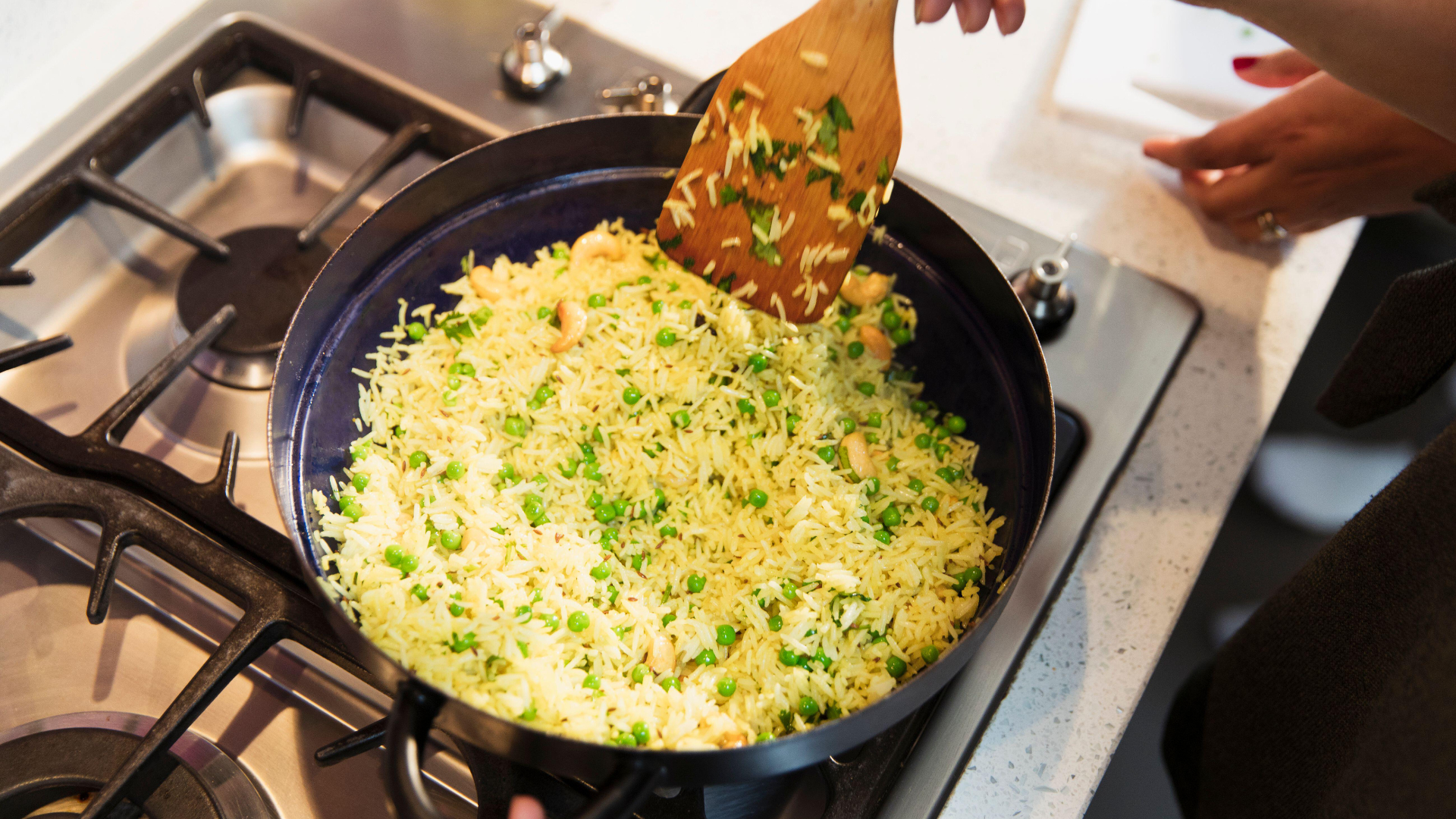 Еще один хитрый метод — это жарка. Причем сделать это можно прямо в кастрюле. Обжарьте крупу риса на масле перед тем, как заливать воду.