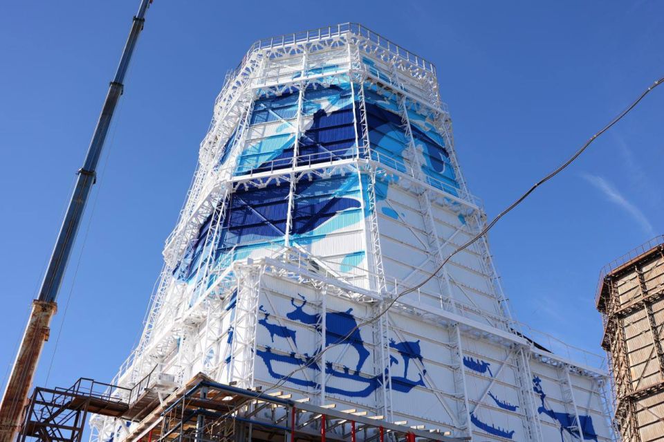 У основания градирни изображены пегтымельские петроглифы — сцены из жизни коренных народов и древние символы, отражающие тысячелетнюю культуру Чукотки.