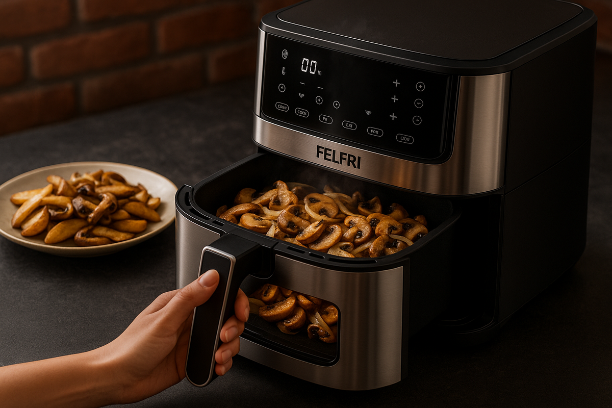 Приготовление лесных грибов может стать настоящим искусством, если знать несколько тонкостей. Зачастую они теряют привлекательный вкус и текстуру, становясь либо слишком пересушенными, либо слишком влажными. Мы расскажем, как добиться идеального результата с использованием аэрогриля — быстро, безопасно и без лишнего масла.
