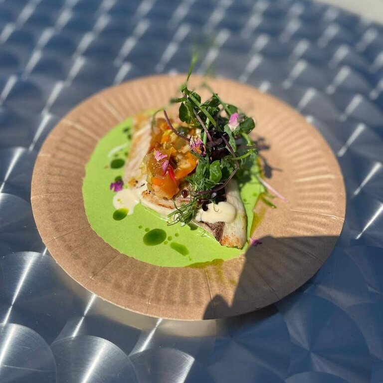 При подаче на тарелку укладываем жареного сома, добавляем шпинатный соус и чатни, украшая всё свежими травами и каплей оливкового масла. Приятного аппетита!