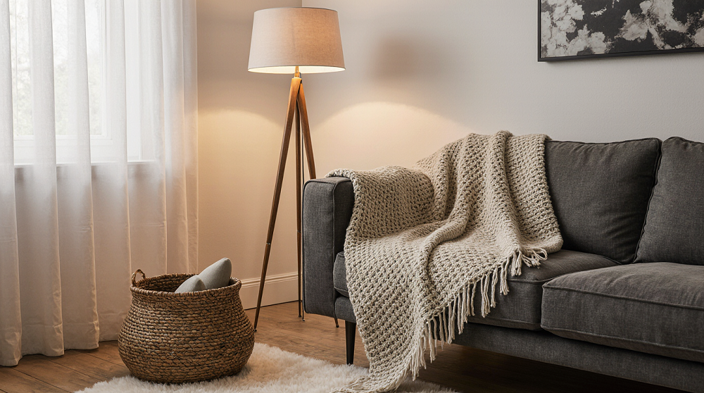 - Мягкий текстильный плед: Плед не должен скрываться в шкафу. Пусть он всегда будет под рукой, приглашая к уютному времяпрепровождению. Мягкие ткани отлично подходят для создания домашней атмосферы.