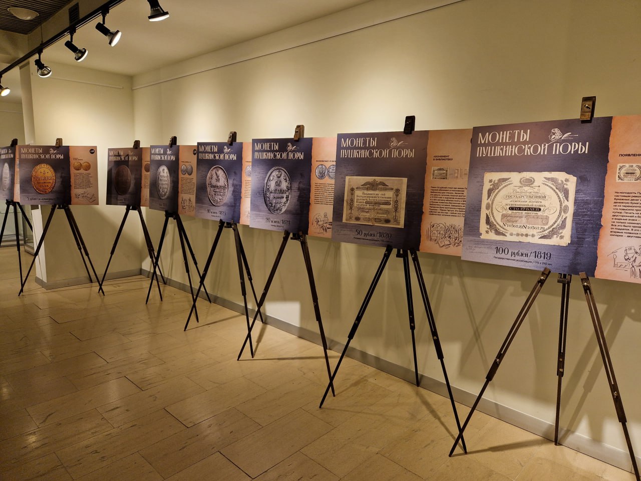 изображения денежных знаков пушкинской эпохи на красочных планшетах от Банка России;
