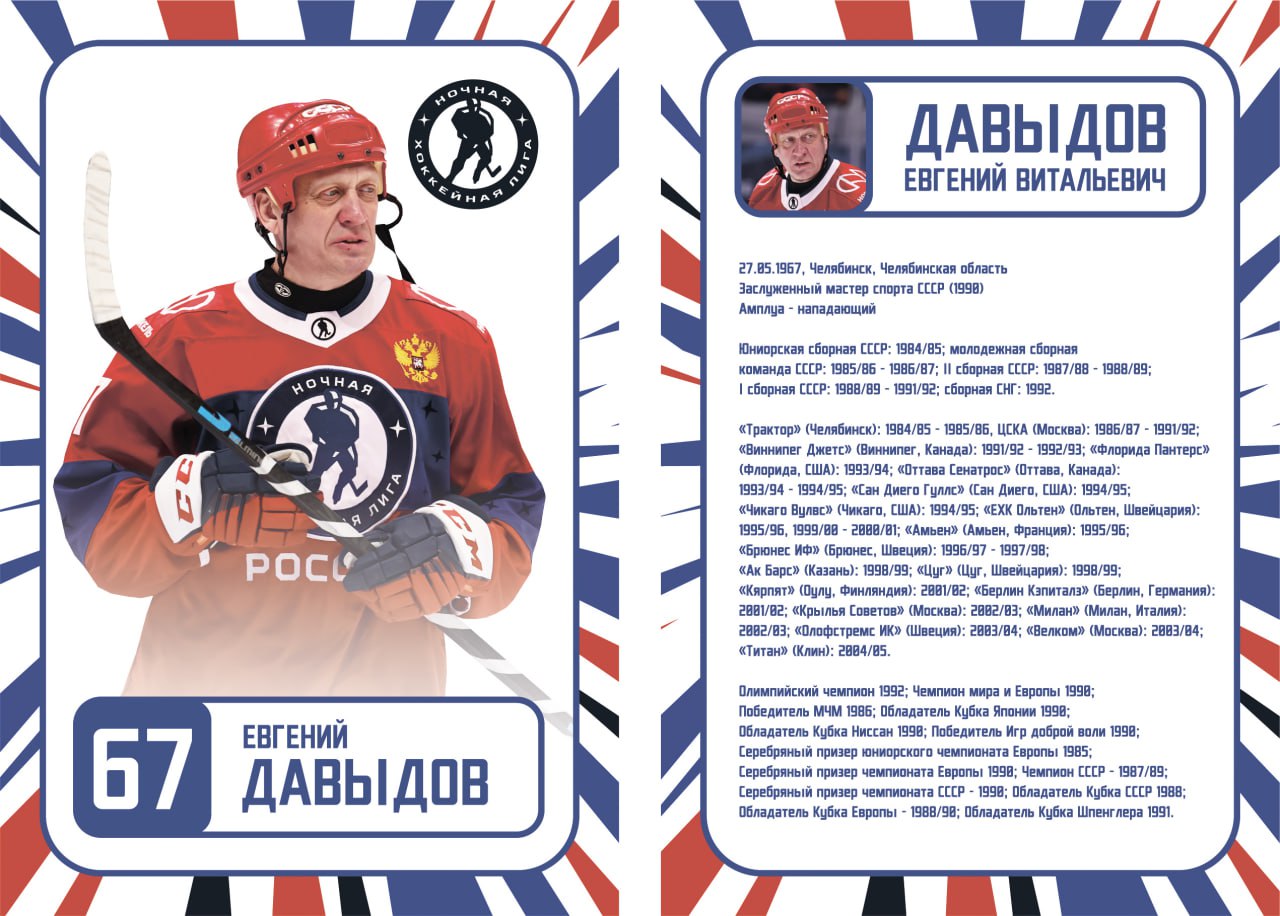 В этом году к нам приедут легенды советского хоккея: Гимаев И.Ф., Гусаров А.В., Давыдов Е.В., Ильин Р.Г., Коваленко А.Н. Подробнее можно ознакомиться в карточках игроков.