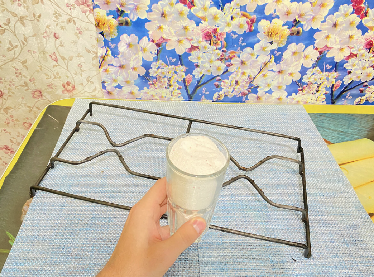 Для начала следует подготовить рабочее место, выбрав подходящую емкость, достаточную для полной погружения решетки. Эффективнее всего, если в ней будет горячая вода — это значительно ускорит процесс очистки. В емкость нужно высыпать стакан стирального порошка и тщательно перемешать до образования однородного раствора.