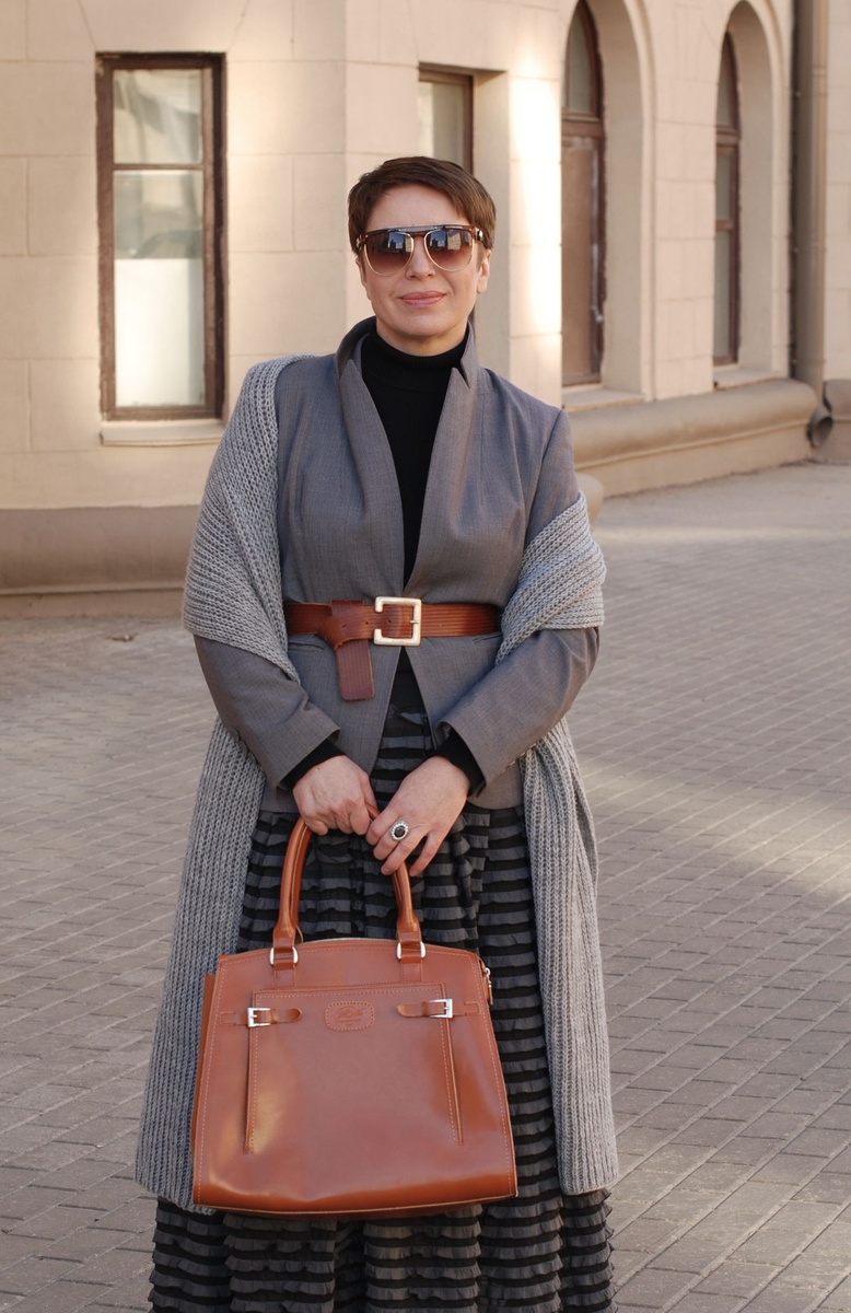 - Кожаная сумка. Эффектный аксессуар с жестким каркасом и строгими линиями подчеркнет любой образ. Отдавайте предпочтение лаконичным моделям без избыточных деталей.