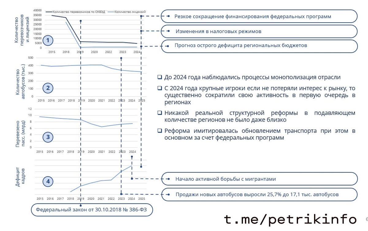 Ситуация на рынке общественного транспорта ставит вопрос о необходимости пересмотра директивного управления. Оно оказалось в ловушке между бизнес-целями и социальной ответственностью. Важно задать себе вопрос: действительно ли текущее регулирование приводит к желаемым результатам, или же оно лишь усугубляет существующие проблемы? Число убыточных и нелегальных перевозчиков растет, а легальные операции оказываются под давлением новых правил.