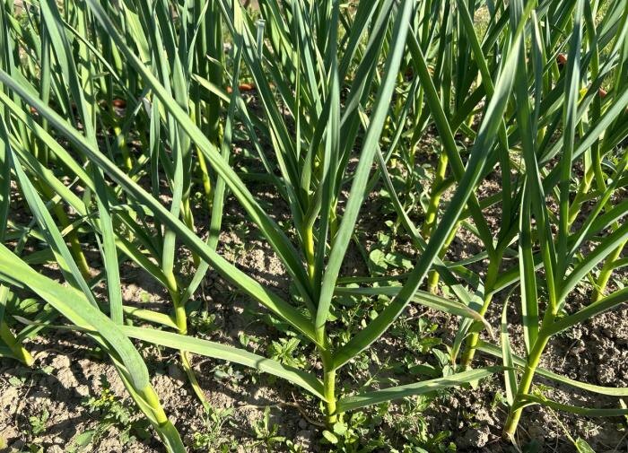 Чеснок требует регулярной подкормки удобрениями с высоким содержанием калия и фосфора, особенно если листья имеют насыщенный зеленый цвет и стоят вертикально. В случае, если растения выглядят вялыми, а их листья приобретали желтоватый оттенок, это сигнализирует о недостатке азота. После восстановления азота можно переходить на калийно-фосфорные удобрения.