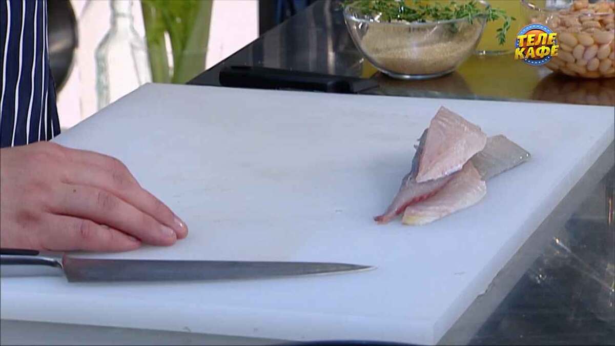 После запекания в духовке при температуре 180 °С в течение 7 минут ваше блюдо будет готово к подаче на стол. Размещая его на тарелке, не забудьте про гарнир — белая фасоль станет отличной базой для филе. Приятного аппетита!