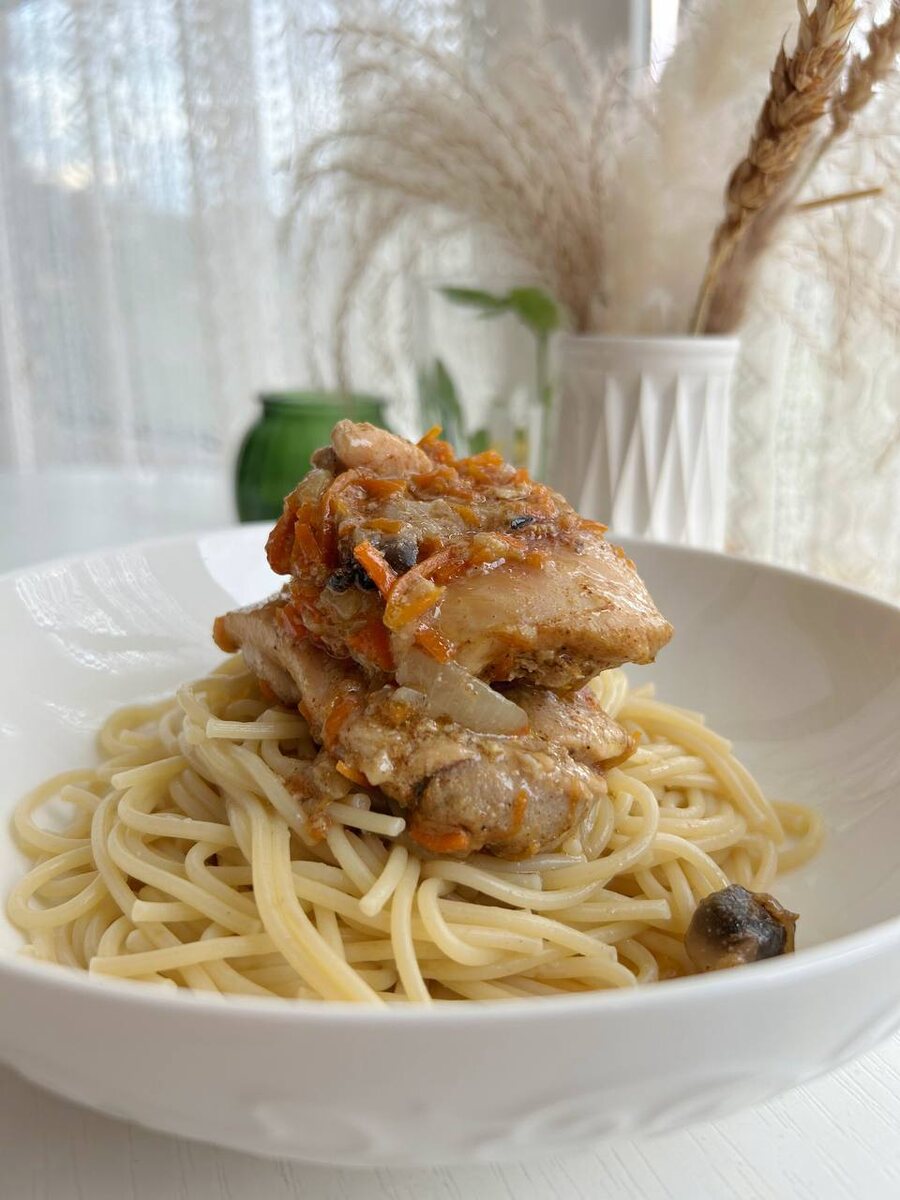 Это блюдо удивляет простотой и ароматом. Обжаренные лук и морковь дают насыщенный вкус, в то время как куриное филе, приготовленное с любимыми специями, превращает спагетти в сытный ужин. Готовится всего за 45 минут под крышкой на среднем огне.