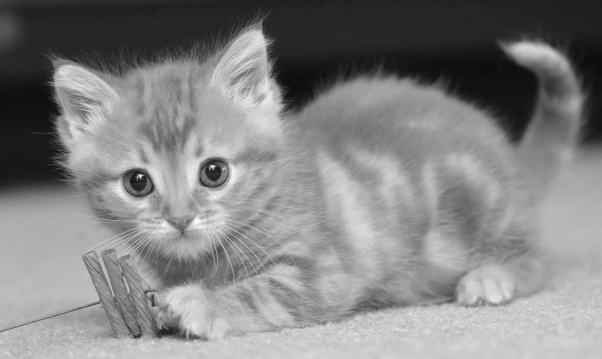 - Какого цвета этот котёнок: серый или рыжий?