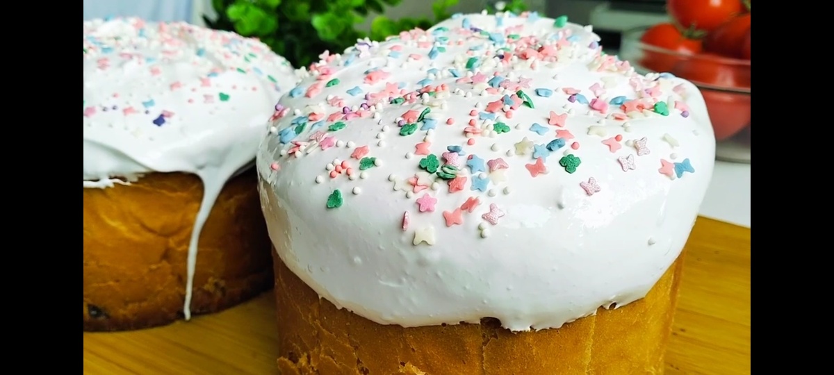 Готовые куличи оставляют остывать, а тем временем можно взбить белки с сахаром до устойчивых пиков для приготовления глазури. Наносите глазурь на остывший кулич, а затем по желанию посыпьте кондитерской посыпкой. Через ночь глазурь затвердеет, и куличи будут готовы к подаче!