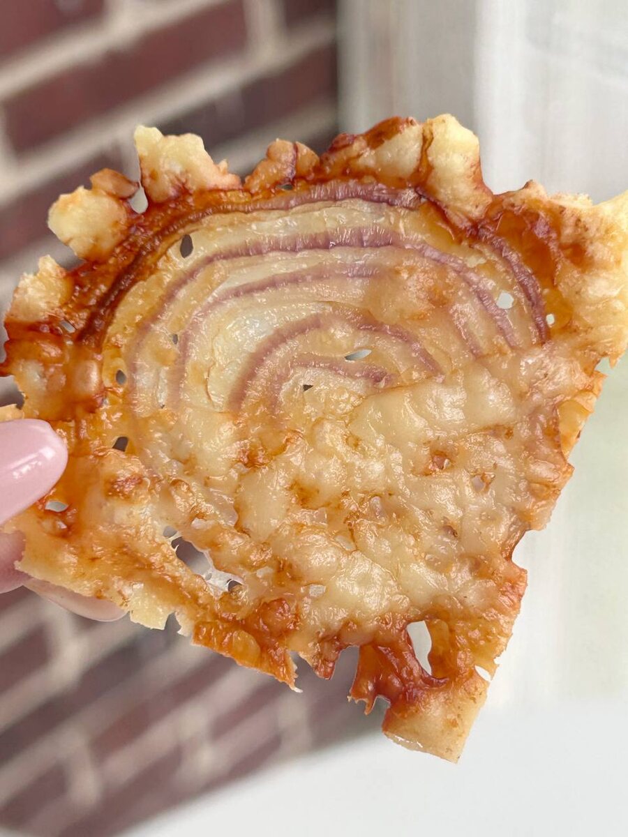 Изучения о текстуре показывают, что хруст можно ждать только по краям — в тех местах, где сыр и лук соединяются. В остальной части консистенция получается мягкой, оставляя желать лучшего. Это не совсем тот эффект, которого ждут поклонники хрустящих закусок.