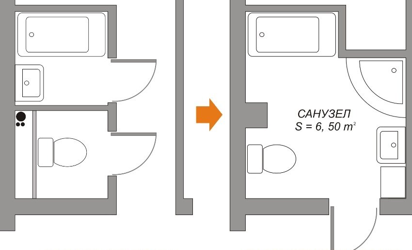 При изменении конфигурации совмещенного или раздельного санузла существует ряд строгих ограничений: