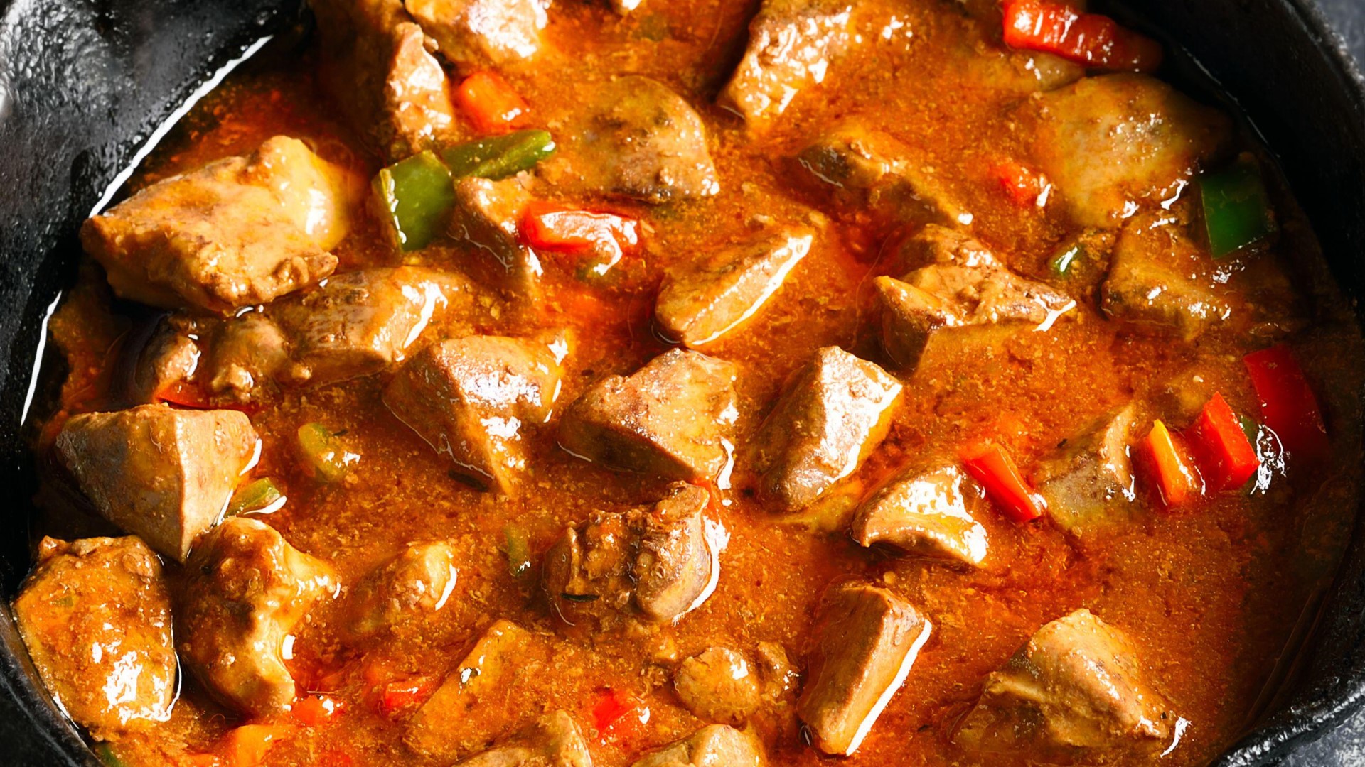 Введите паприку, томатную пасту, соевый соус, куркуму, соль и черный перец. Добавьте печень и обжаривайте пять минут. Влейте воду и тушите под крышкой еще столько же, советует «Лайфхакер».