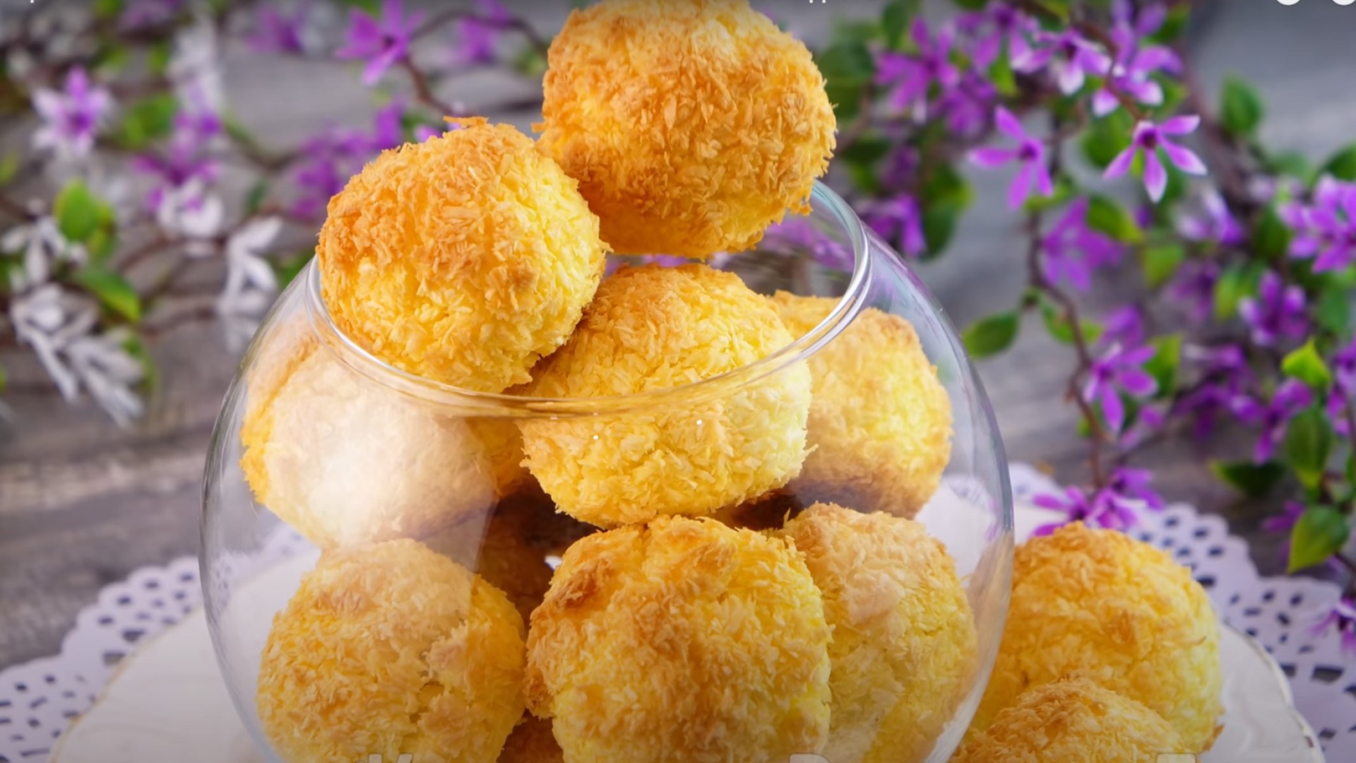 Яйца взбейте венчиком с сахарным песком. Добавьте кокосовую стружку, крахмал и замесите тесто.