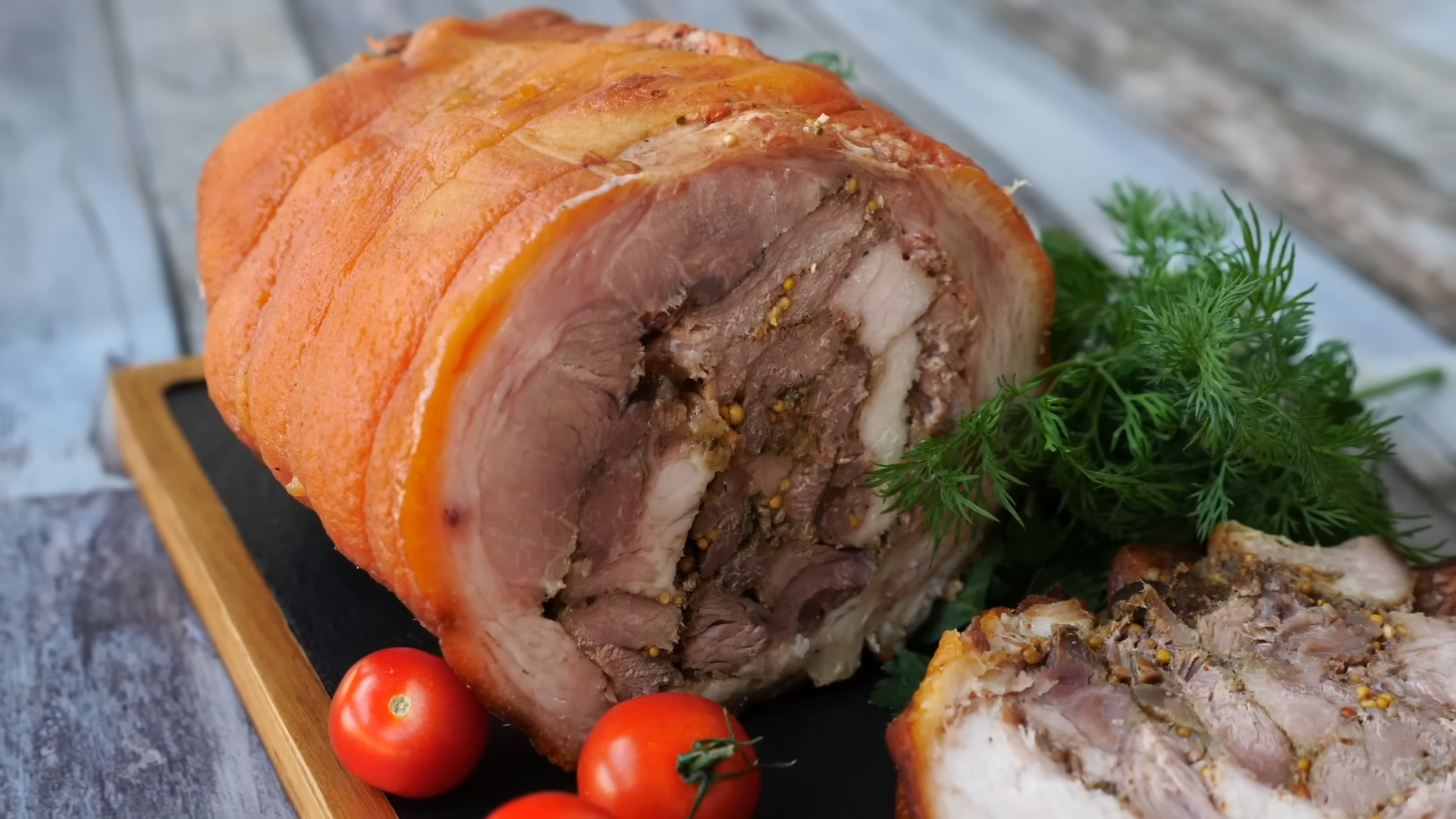 Планируете отказаться от традиционной нарезки из сырокопченой колбасы на Новый год, но не знаете, чем ее заменить? Приготовьте рулет из свиной рульки по этому рецепту. Выглядит очень эффектно, получается необычайно вкусно.