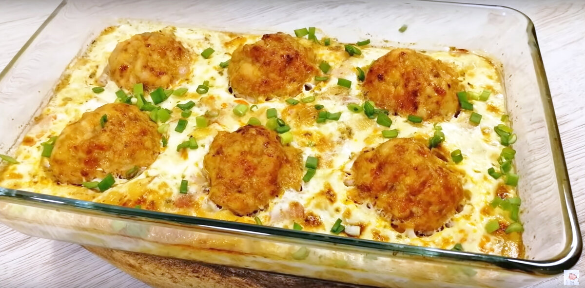- Сформируйте из фарша небольшие тефтельки и укладывайте их сверху на макароны.