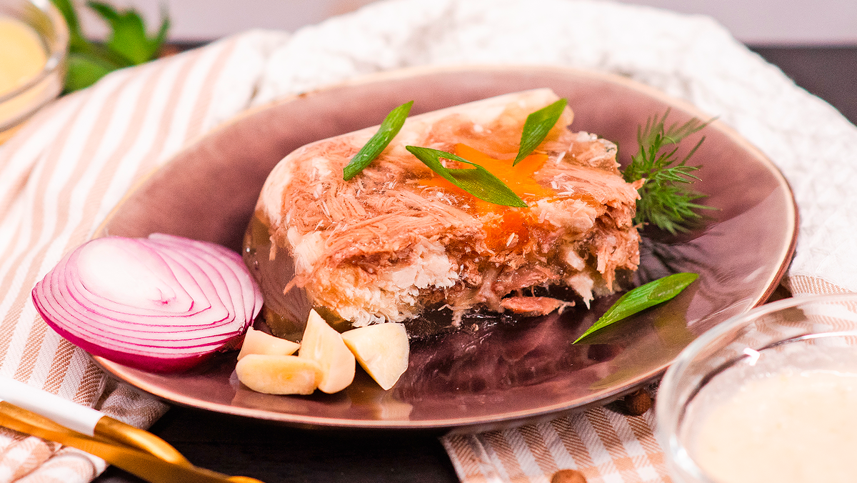 Этот оригинальный рецепт холодца подчеркнет атмосферу праздника и удивит вкусовыми сочетаниями. Приятного аппетита!