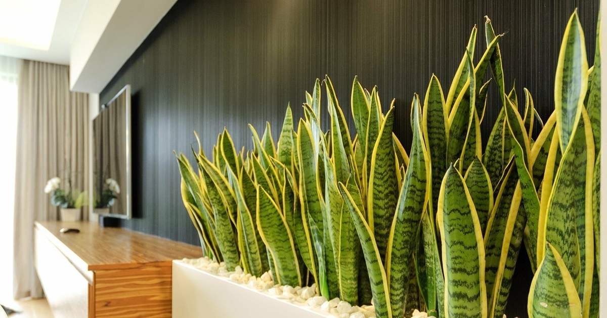 - Сансевиерия. Кроме популярного имени "тещин язык", этот растение славится своей способностью накапливать углекислый газ и очищать воздух, даже когда его листья покрыты легким слоем пыли. С ее гладкой поверхностью, пыль легко смывается, а само растение — это настоящий чемпион по выживанию.