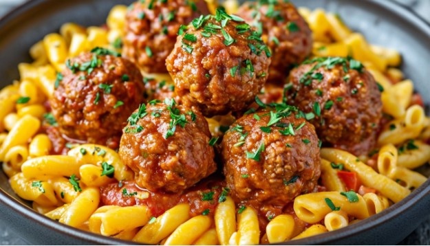 Тефтели можно подавать как с наливкой сырного соуса, так и запекать в духовке до получения румяной корочки. Это прекрасное блюдо отлично сочетается с пастой и свежим зеленым салатом.