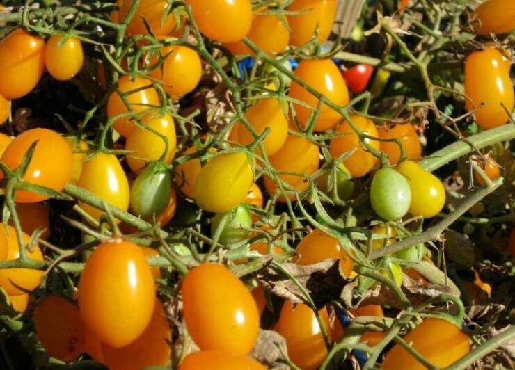 Названия этого сорта прямо говорит о его внешнем виде — плоды округлые, оранжевые и крайне сладкие. Масса плодов составляет порядка 50 г в открытом грунте и до 70 г в теплице. Несмотря на не слишком высокие растения, рекомендуется подвязывать их к опорам для лучшей поддержки.