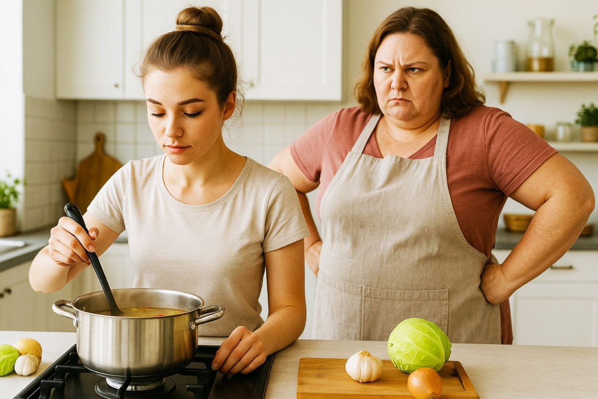 Марина, не колеблясь, решила, что это не будет простой победой свекрови. "На кухне командую я. Щи варить буду — без сахара! Если я услышу хоть одно 'у мамы вкуснее', ночь ждёт её там, где её сердец больше", — объявила она.