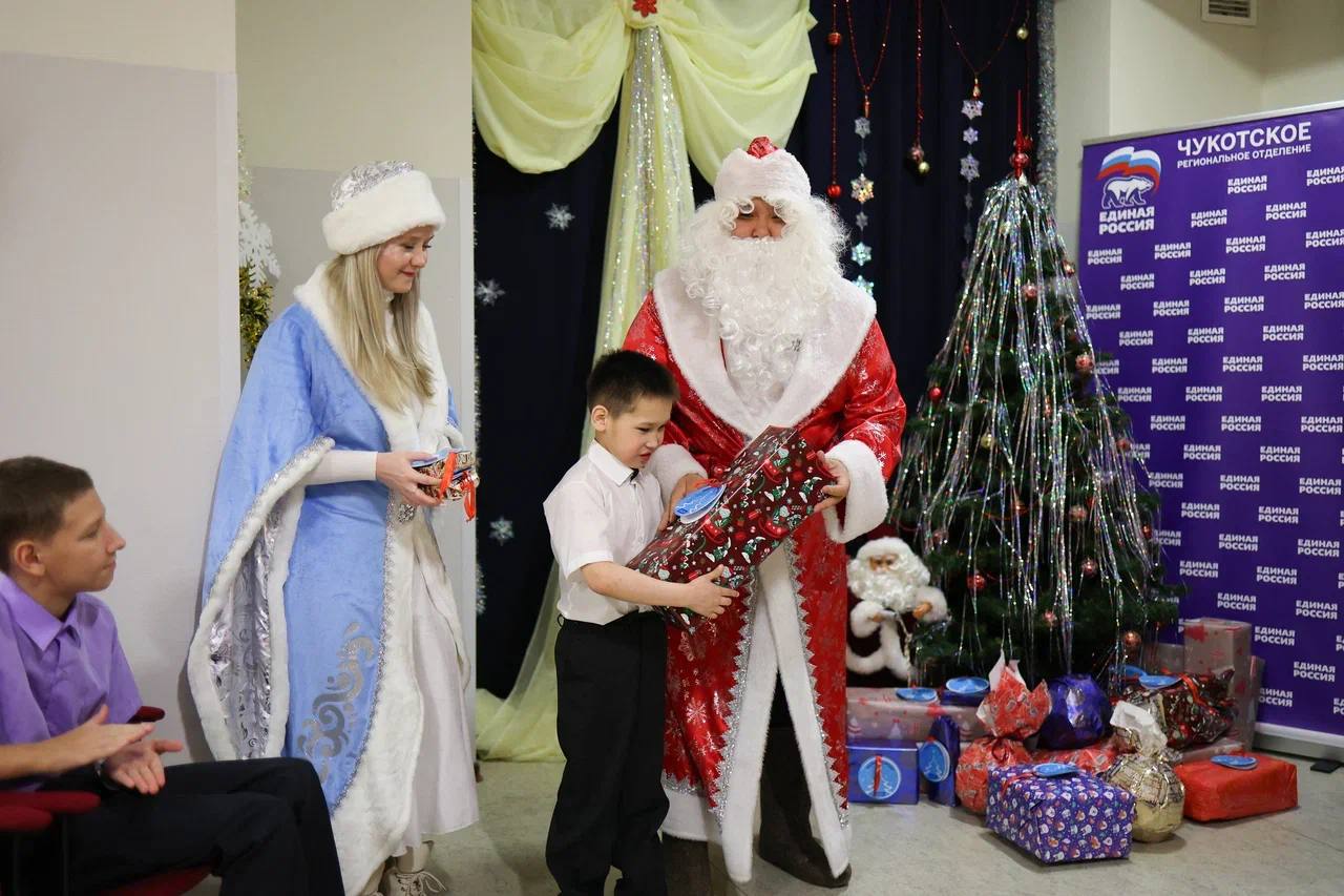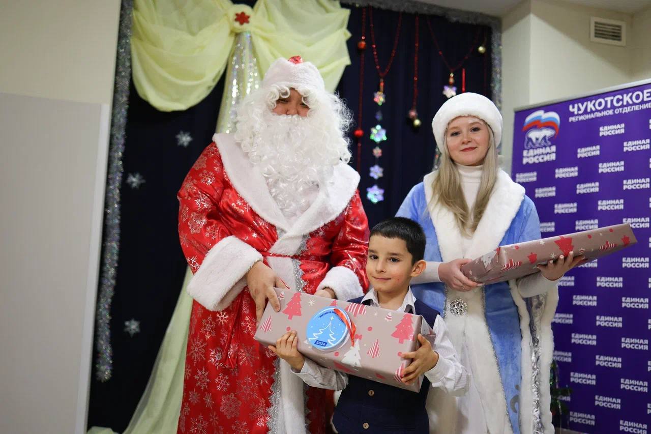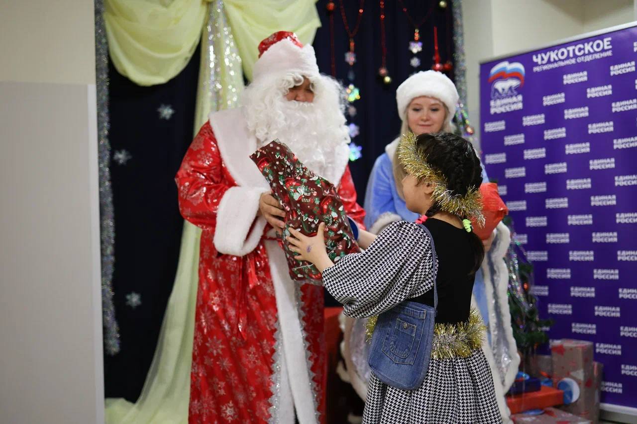 Кроме того, к партийной акции «Ёлка желаний» присоединились главы муниципалитетов, сотрудники окружной Думы, сенаторы РФ и депутат Государственной Думы РФ, руководители организаций и предприятий Чукотского АО. Возраст детей, которым вручили подарки, — от 4 месяцев до 17 лет.