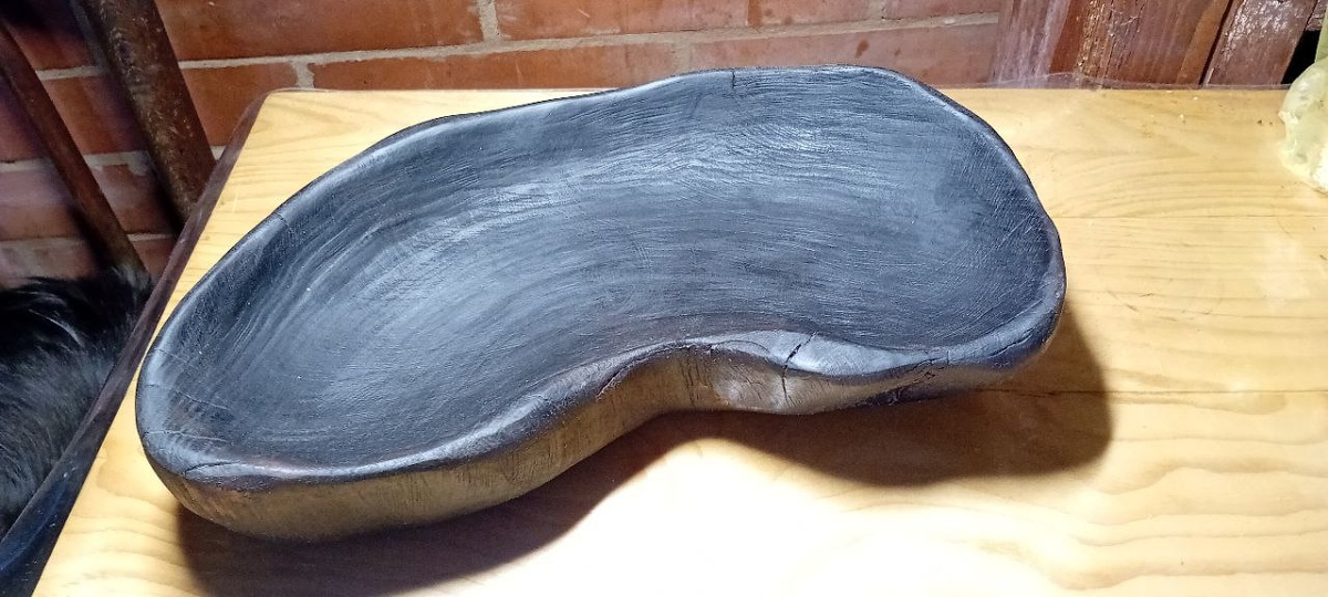 Созданная из липы, эта тарелка изначально не могла привлечь внимание своей однообразной текстурой. Однако, используя технику обжига, мастер смог изменить её до неузнаваемости. Теперь она представляет собой яркий и стильный элемент, который привлекает взоры и вызывает интерес. Инновационный подход к обработке дерева сочетает в себе эстетику и функциональность.