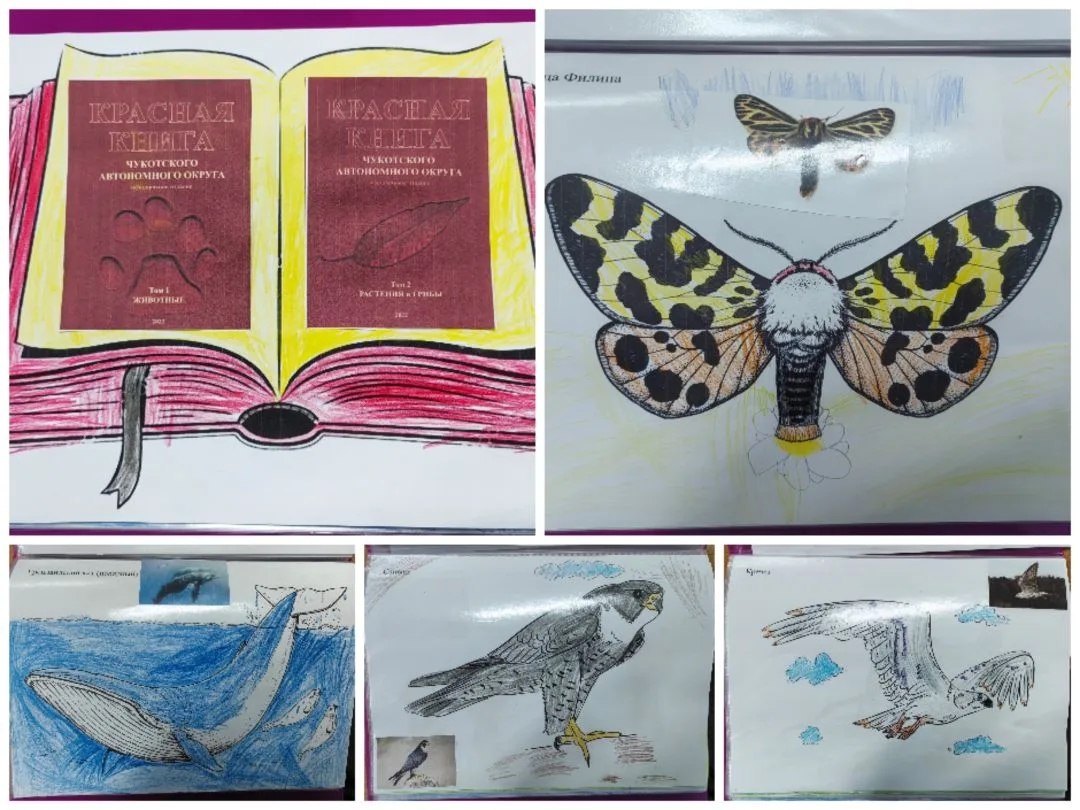 Затем ребят ждал небольшой конкурс-викторина, где они смогли показать полученные знания. Самым ярким моментом стала творческая работа всех участников — дети нарисовали иллюстрации для своей собственной «Красной книги Чукотского автономного округа». Эти рисунки стали итоговым проектом мероприятия и показали понимание детьми важности бережного отношения к живой природе.