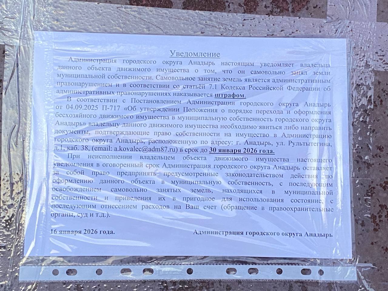 Связаться с Администрацией городского округа Анадырь (кабинет №38) в рабочие часы.